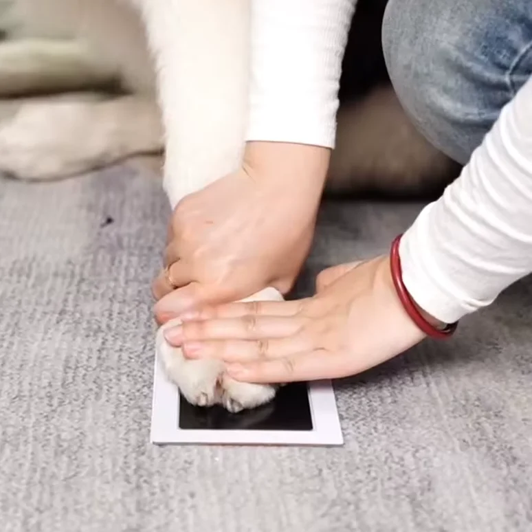 Med vårt tassavtryck-kit tar du enkelt ett fint avtryck av ditt husdjurs tass med giftfritt bläck. Perfekt som egen liten minnestavla – eller som ett gulligt och personligt tillägg till en tavla på din hund eller katt.